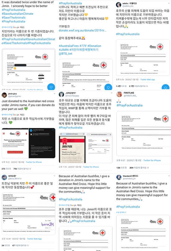 Meanwhile, BTS's Jimin fan club is voluntarily conducting a donation relay to help Australia.