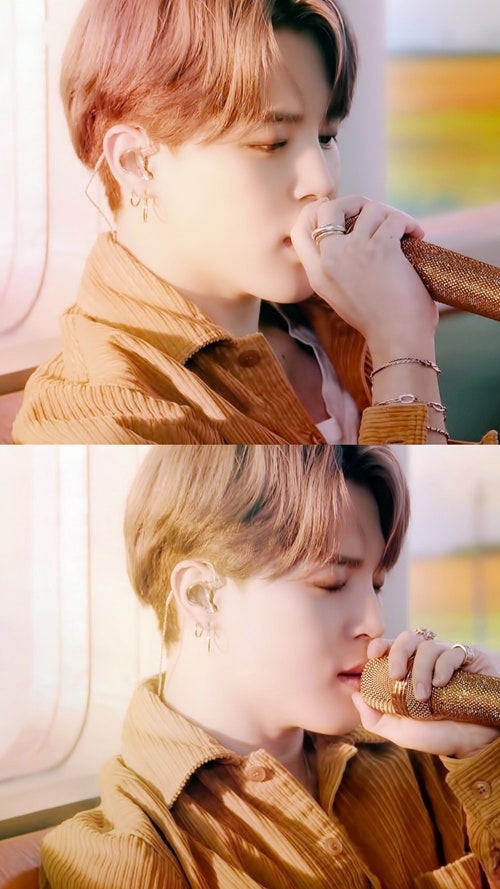 First, Jimin performed "Life Goes On," the first Korean song to reach number one on the Billboard Hot 100, against the backdrop of a moving train. He matched a brown corduroy jacket to match the soft and warm atmosphere of the song. The jacket blended in with the sunset streaming in through the train window, creating a fairytale-like atmosphere. Jimin's sweet vocals, gaze, and sorrowful expressions added to the heartwarming emotion.